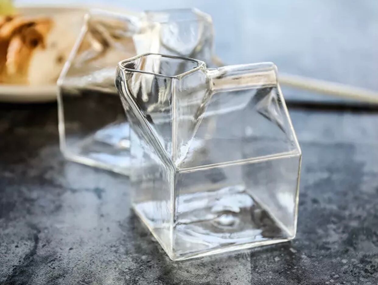 牛乳パック型ガラスカップ