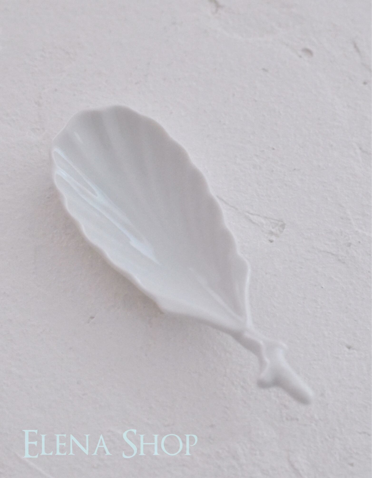 シェルをモチーフにしたお皿に珊瑚の持ち手がついたアミューズスプーン。